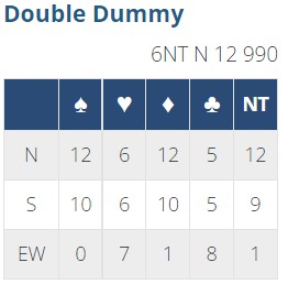 I en så stor pulje skjer alltid en del merkelige ting. Men +510 til Ø/V for utgang i hjerter med tretten stikk var det klart vanligste resultatet og ga omtrent middels, faktisk litt over til Ø/V. Det var også noen Ø/V-par som hadde +520 i 3NT, og de fikk over 70%, kun litt lavere score enn de som meldte slem og noterte +980 som ble resultatet da syd tok for kløver ess. Det var også noen par som fikk alle stikkene i 6 hjerter, og et par friskuser som delte toppen med +1020 for 6NT med tretten stikk.