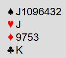 Ved det andre bordet valgte Tromsø sin vest å passe over Livgårds 1 ruter (hjerter). Aa meldte 1 hjerter som nord (trekorts hjerter). Da syd inviterte til utgang ble det utgang andre veien ved det bordet, 4 hjerter spilt av nord. Det kom en liten kløver ut fra øst til liten, kongen og esset. En ruter ble spilt til syd, så hjerter til knekten, damen og kongen. Nå sto kontrakten, Ø/V kan ikke få mer enn de to trumfstikkene og for spar ess. Øst spilte mer ruter, og da han kom inn på den andre trumfhonnøren sin prøvde han liten spar (husk han så ikke nord sine kort) i håp om at vest kunne komme inn på spar konge for å spille ruter som øst i så fall kunne trumfet. Men da ble det ikke spartaper på spillefører, ett overstikk i 4 hjerter og +450 til N/S.