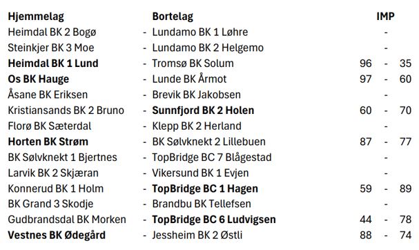 I NM for klubblag pågår nå 5 runde. Kampene skal være ferdigspilt i løpet av denne uken. Her er kampoppsettet og resultatene i de kampene som allerede har blitt spilt: