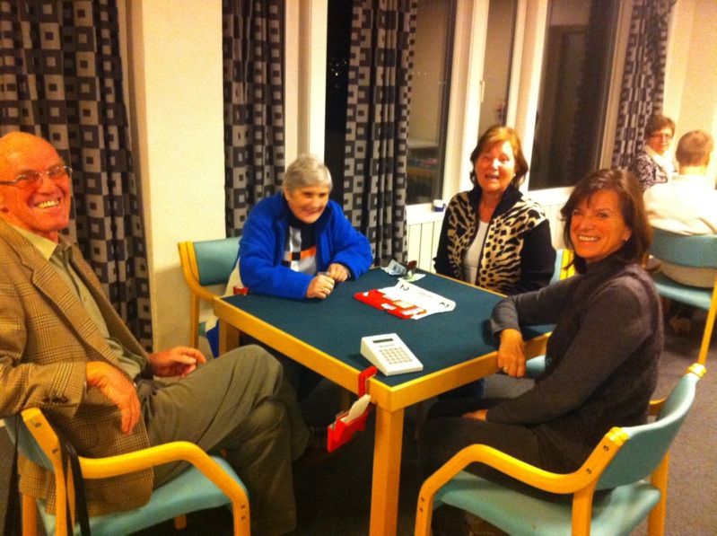 Dette var en usedvanlig gjevn kveld der det ble store utslag på slutten og snudde alt på hodet. Vårt nyeste medlem; Anne Lene spilte med Tom og lå i tet sammen Borgar og Ove stort sett hele kvelden, men på slutten kapret Morten og Arild seieren med utrolige fattige 0,2 poeng foran Frank og Runar, mens Borgar og Ove datt ned på 3 plass.