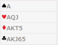 Etter å ha tenkt meg nøye om fant jeg ut at han måtte ha noe sånt som nærmere 30 HP (eller mer) og femkorts eller sekskorts kløver. Det hadde han ikke, ikke helt, men hånden er klart verd mer enn de 26 poengene som kan telles opp.
