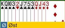 Syds melding blir forklart til svake to hjerter. På svake 2 åpninger har dere avtalt å doble med 15+ og majorbasert (andre major) og melde 2NT med 15+ og minorbasert. Men her melder Bavianen av alle ting 3NT. Hva i alle dager har han nå? Har du forslag til hva som bør gjøres på din hand så klikk her for å komme med forslaget ditt.