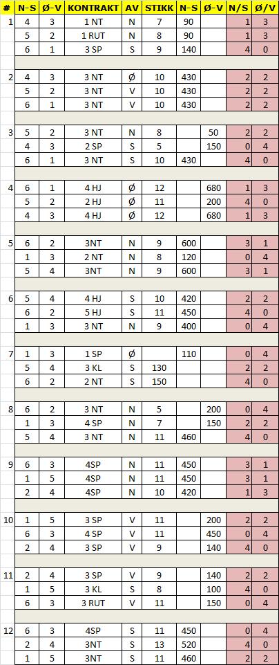 Olav forteller at etter han fornøyd hadde meldt en ruter så "forsvant" det en kløver og dukka opp en "spar" til.... Dermed ble 2 spar i neste melderunde tolket av makkeren som minst 4 ruter og 4 spar, hvorpå 2NT meldes. Det er jo ikke urimelig og viser vel omtrent en slik hand. På 3 ruter går det imidlertid pass rundt.... I ettertid lurer Olav på hvordan finne optimalkontrakten 4 spar. Det er flere mulige måter å gjøre det på, men den mest tradisjonelle vil vel være å melde inn 1 spar hvorpå makker har til 2 spar (6-9 og trekortsstøtte) over 2 kløver. Når det nå meldes 3 ruter etter at makker har støttet i spar, så vokser kortene og øst bør ta imot invitten og avslutte med 4 spar. Men - dette må man selvfølgelig ha avtaler på.