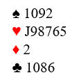 Slik som kortene så ut sammen kunne de vinne 7 grand, 7 kløver og 7 spar (!). Med andre ord ville min 2 spar doblet endt med null stikk hvis det hadde blitt kontrakten. Men de gikk i stedet tre bet i 6 hjerter, og takk for det…