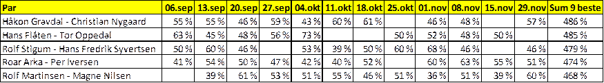 Jan Frode og Lena vann både i kveld og samanlagt i Haustturneringa.