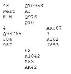 Jeg satt i nord og tenkte en del før jeg meldte 4 ruter. Svein Gunnar meldte 4 hjerter, som stod med 10 stikk. Etter at spillet var ferdigspilt, og resultatet godkjent på bridgemate. Fant de ut at de skulle rope på TL, og resultatet ble endret til 4 ruter 10 stikk. Etter denne endringen datt vi fra 18. til 24 plass på resultatlista.