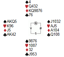 I kampen mellom Hammerfest og Lyngen kom begge bord i 6 kl, og som vi ser må kløverdama finnes. Ved vårt bord la spilleføreren fra Hammerfest ned kløver konge og kløver til esset, og dama stupte.