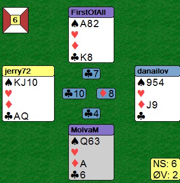 Vest kunne unngått dette ved å beholde kløver 3 i posisjonen til venstre. Da kunne han alltid tvunget nord inn i kløver.