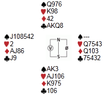 Å bli god i bridge handler mye om å kjenne igjen situasjoner og posisjoner. Den som gjør det kaprer ofte et poeng eller to mer enn andre i det lange løp, og det er ikke overraskende at Jørgen petter Nermo og Stig Vestveit lå i tet under nesten hele KM Par. For når Stig Vestveit kjente igjen posisjonen fra spillet under var ikke veien lang til et ekstra stikk og noen ekstra matchpoints. Stig satt nord, og skulle spille 3NT, vest hadde åpna det hele med en søplete 2 spar. Ut fra øst kommer liten kløver.