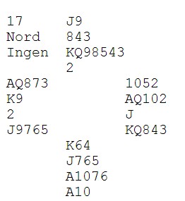 Denne gangen får tdu 3hj på 2NT og vet at makker har 3-4-5-1 fordeling. Det var vel flott?