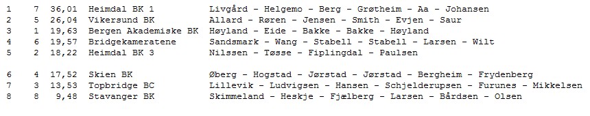 Tidligere i kveld tok jeg en telefon til styremedlem Astri Steen Lybæk for å få litt inside information. Mitt første spørsmål var selvsagt hvor det ble av det forventede benkeforslaget på Jan Aasen, men det kunne hun rett og slett ikke svare på. "Jeg snakket med mange av representantene i helga, selvsagt ikke bare om valget, men det var ingen som sa direkte til meg at de kom med mandat fra sin krets om å foreslå Jan Aasen", sier Astrid. "Da forløp hele valget svært udramatisk og vi ungikk det som kunne blitt en lei sak mellom to fløyer. Stemingen var god hele tiden og spør du meg har vi fått et svært kompetent styre. Det er en fin blanding av menn og damer, det er en fin blanding av folk med ulik erfaring og kompetanse og det er en fin blanding av folk med ulik tilnærming til selve bridgespillet. Kristian Barstad Ellingsen er spiller på toppnivå, noen av oss middelhavsfarere pluss/minus, mens andre har sine bein mer i hobbybridgen. Jeg ønsker også å trekke fram en sterk innsats av Kari-Anne Opsahl som var med å sikre prosjektet 5,8 millioner fra Troms Fylkeskommune. Hennes kompetanse blir viktig å ta med seg videre og det er også viktig at de nordligste fylkene, Troms spesielt, er sentralt plassert i organisasjonen."