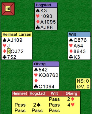 "Økonomiplan ble godkjent under diskusjon. Salen mente rimelig sterkt at Norsk Bridge skulle bli digitalt for å spare penger samt komme mer oppdatert og aktuell . Videre ble det bestemt at vi så fort som mulig skal endre i ifra at ikke medlemmer skal automatisk bli medlemmer etter 3 kvelder til at ikke medlemmer skal måtte kreves for 50kr mere i service avgift av forbundet. Dette skal senest tre i kraft ifra 01.01.15. Nå er det valg snart, Snurr, så jeg må avslutte. Det virker som Aasen ikke stiller, hmm"