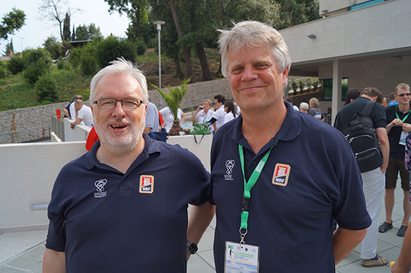 Rune Anderssen (t.v) og Peter Marstrander smiler selv om det ble tap mot Ungarn.