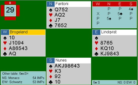 På det andre bordet meldte Graves - Schwatz "bedre" og oppdaga at de ikke hadde sparkontroll. De stoppa i 5ru, men tapte ufortjent 12 IMP.