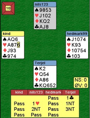 Du kan kanskje si at siden syd meldte inn var det størst sjanse for at han hadde manglende honnører, men det er vel ikke noe i veien for at han har ruterdame i stedet for hjerterdamen.