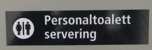 Så til overskriften. Mellom Gate 11B og Gate 11C er det et toalett. Ikke for oss reisende, men for personalet som jobber i en av de to stedene som serverer noe i den lange gangen. For at vi som skal ombord på flyet skal skjønne at dette toalettet ikke er for oss, har flyplassen sannynligvis engasjert et byrå til å komponere, designe og trykke skilt på døra inn til avtredet. Under ser du resultatet av den jobben. Vi kunne klart også det bedre vel?