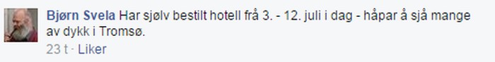 Det er flott at de som skal til Tromsø legger ut info for å friste alle andre. Vi vet av erfaring at folk trekker folk, så det er bare å hive seg rundt. Jeg håper også prosjektet og NBF er flink til å publisere alternative overnattinger og vise hvor/hvordan det går an å gjøre oppholdet noe billigere. Er det enkeltpersoner som kjenner til muligheter, skal jeg være med å legge ut.