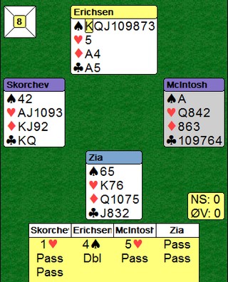 Knut fortsetter så med å gi signal om svært positive tilbakemeldinger på NBF sin tilstedeværelse under de siste store internasjonale arrangementene. Tromsø-EM har fått god sjanse til å vise seg fram på flere måte, både med stand i spillesalen, på hotell og i bulletiner. På BBO er det kontinuerlige reklame for EM og Knut sier at det forrige måned var over 8000 unike personer som klikket seg inn på annonsen. 21% nordmenn, men hele 18% fra USA. Loddtrekningen om fire gratis flybilletter til de syv største forbundene i Europa har også blitt godt mottatt. "Dette koster selvsagt," sier Knut, "men ikke mer enn f.eks en helside i VG en eneste gang"