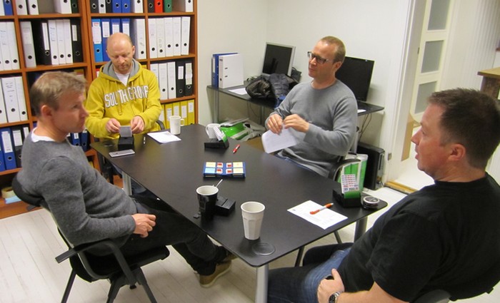 For Lyngdal spiller Per Knudsen - Gaute Ubostad og Karl Olav Hansen- Calle Knudsen. Kristiansand stiller med dette laget: Geir Brekka - Tom Høiland og Frank Svindahl - Karl Christian Bauman.