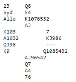 Jeg kunne satt mange utropstegn i dette spillet, men det var nå sånn det gikk. Tom Høiland i syd skulle starte ballet og begynte med ruteresset. Når du ser overskriften, så skjønner du hvordan det gikk.