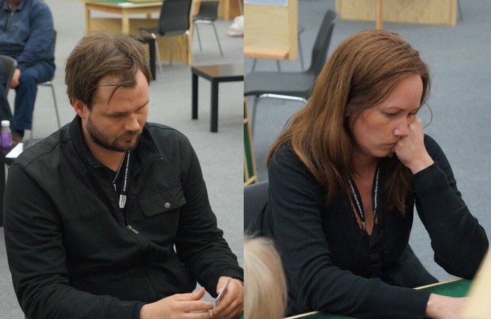 Nils og Terje var svært gode. Jeg kunne ikke se en eneste feil de gjorde, mens de hadde flere gode vurderinger. Erik og Steffen var mer rustne og hadde minst tre uheldige/dårlige vurderinger. -1100 og -800 er aldri bra, selv om det kunne vært rett begge to. Å gå beit i frivillige 5hj uten at den sitter spesielt surt, er ikke bra. Spilleføringen i 4sp i 12, var vel heller ikke noe unge Berg vil få medalje for.