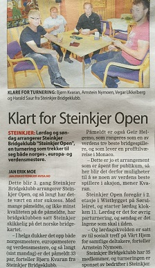 Jeg synes oppslutningen om norske turneringer er stigende. Vi har 38 par i dag og det er langt over det antall vi ville hatt for  noen år siden. Det jobbes bra!!