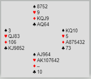 Nord vant i andre stikk stikk for hjerter dame og tok resten av stikkene i løpet av sekunder siden ruterfargen også var gående, Bergen Ak. +690.