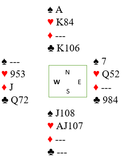 Så vest må spille kløver. Da kan spillefører gratis prøve tieren. Slik det satt vinner kløver 10 stikk, og to hjertere forsvinner fra syd på kløverstikkene. Tolv stikk uten å måtte gjette i hjerter. '