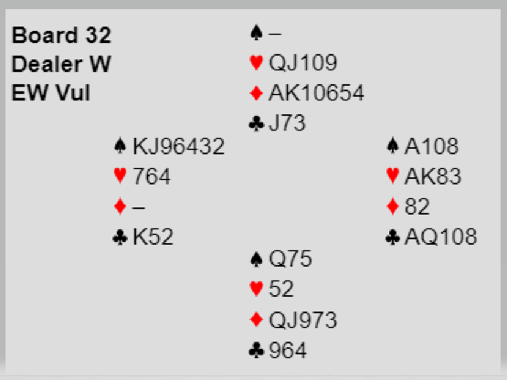 Og det ble altså en bet, i et spill som ikke vil bli så lett å glemme for det norske paret da man kan si det ble nokså avgjørende for kamputfallet. Ved det andre bordet ble det også meldt 7 hjerter, men der spilte syd ut ruter. Da var spillet kjapt over, tretten stikk på mindre enn tretten sekunder. En bet ved de ene bordet pluss vunnet storeslem ved det andre er verd 17 IMP selv om det er utenfor sonen.