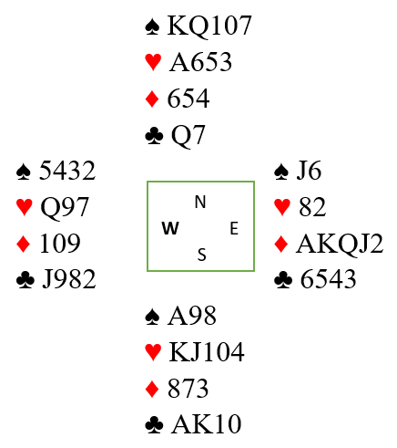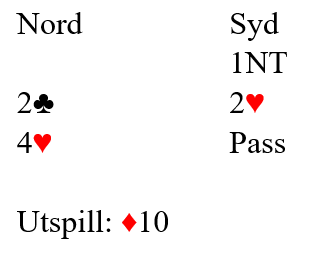 Svein åpnet med 1 spar, Hans passet også og Flemming svarte 2 ruter(game forcing) med følgende: