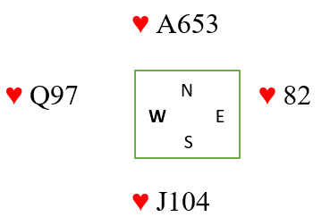 4 spilleksempler fra spill 1- 18. Spill 8 med Vest giver og ingen i faresonen ble avgjort på nokså tilfeldig måte skyldes trumfsitsen. Svein Grimstad (N)-Flemming Johnsen (S) møtte brødreparet Jarle Melbye (V)- Hans Melbye (Ø) etter pass fra Jarle hadde Svein denne hånden: