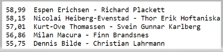 11.Bjørn Ågheim- Bjørn Hesthagen +7,3