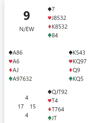 Min venn gikk altså en bet, og da Kina spilte 6NT med tretten stikk ved det andre bordet kostet spillet 17 IMP for NZ. Hvis 7 kløver hadde blitt vunnet ville det blitt 12 IMP andre veien - 29 IMP i sving. I kampen betød det fra under 2VP til et knepent tap for sølvvinnerne, og den dobbelsvingen utgjorde forskjellen fra første til andreplass i mesterskapet.