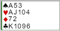 Du skal spille 7 kløver etter kløver 4 i utspill fra nord. Prøv deg selv før du ser alle kortene lenger ned på siden.
