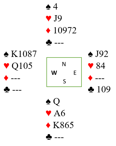 BK Misclick har turneringer hele uka, på kvelden gjerne fra 19.30 med 24spill og flere dager også på tidlig formiddag, 12 og utover. Lørdag er det sesjon 18- 20 og deretter ny turnering med flere spill. Deltar man ikke selv er det mulig via spillelink å gå inn og følge resultatene etter hvert som de kommer opp etter avsluttet runde. Søndag kveld hadde BKMisclick 40par i sving og allerede 1. runde ga mulighet for spennende «bakspilling» i etterkant ved å klikke seg inn på aktuelt spill og og bord og der følge meldingsforløp og spill-utførelse. Spill 1 ga mulighet! Der var det «store kort» for Nord- Syd, Nord giver i ugunstig sone med dette:
