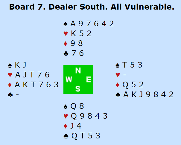 Ved det ene bordet i denne lagkampen tenkte ikke syd sånn og bare satte i gang. På den utspilte hjerterdamen ba han om esset, spilte kløver til esset og ruter dame som fikk seile. Men øst hadde ruter konge og spilte hjerter gjennom syds K-10. Spillefører la tieren, vest vant med damen og spilte hjerter 9 til kongen (øst fulgte farge). Nå var det kun åtte stikk, og vests hjerter var godspilt. Spillefører forsøkte liten kløver mot Q-10 og la tieren idet vest la liten. Hvis knekten hadde vært hos vest og kongen hos øst ville damen bli godstpilt og gitt det niende stikket. Men øst stakk med kløver knekt og spilte liten spar. Spillefører trodde vest hadde en sparhonnør og valgte å gå opp med esset for å begrense nederlaget - en bet. Hele spillet så slik ut: