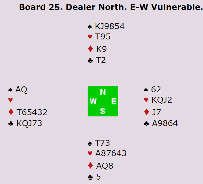 Nei, slemmen ble vunnet. Men det var fordi vest gjorde en ganske grov feil idet liten kløver ble spilt fra syd, han la i kløver 10! Esset vant, så kløver mot syd, og knekten kom på, syd stakk over med damen og vest med kongen. Nå sto kløver 9 og kunne ta ut vest sin siste kløver.