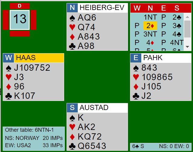 I kampen Norge - USA 2 meldte Nicolai Heiberg-Evenstad - Marius Dalemark Austad denne brukbare, men ganske harde lilleslemmen:
