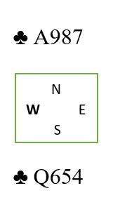 Det er en elegant variant for å løse en litt tynn farge, men en skal være klar over at det er mot oddsen å spille slik hvis en ser på fargen isolert sett. Det kan være en farge omtrent som denne: