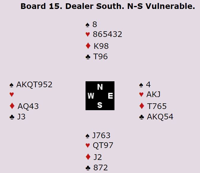 Dermed ble det lettspilt lilleslem i kløver, bare taper i spar siden sp K satt i Syd. Men siden sparen satt 3-3 imot var det ingen andre tapere og 6 spar gikk også hjem. Tredje bord i lilleslem var Frode Rostad- Torfinn Wilhelmsen som kom i 6 NT men siden finesse i spar gikk dårlig var det der bare 11 stikk å få. Bet altså, topp for 6 spar og nest topp for 6 kløver der trumftilpasningen var betryggende god- men tatt på sjanse!