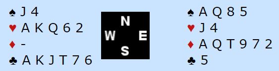 Det er klart at i dette spillet står det faktisk i 7 hjerter på 4-3 tilpasning. Der er det bare å stjele en spar og det er tretten stikk med fire stikk i spar.