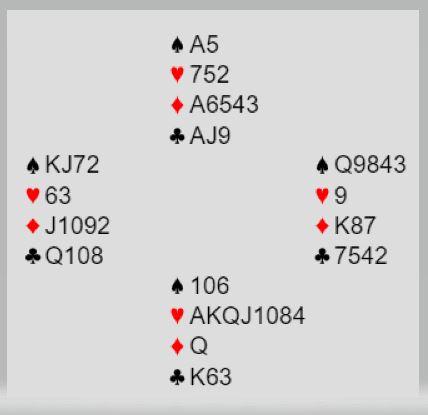 Nord var med på notene, han hadde faktisk tre ess (!). Så de havnet i 6 hjerter etter et br meldingsforløp.