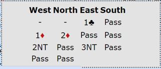 Som i forrige innlegg var dette også et sånt spill hvor det handlet om hvilken utgang, NT eller majorkontrakt. Her ble det altså en håpløs 3NT-kontrakt.