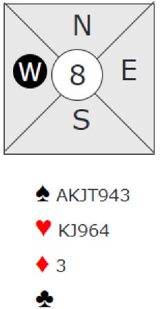 Det blir litt avhengig av avtaler dette. Er 2 hjerter krav? Hva betyr hopp til 3 hjerter? Noen bruker et slikt hopp som Splinter (singelton med ruterstøtte i dette tilfellet), andre liker å ha den meldingen til rådighet for å vise minst 5-5 i majorfargene og utgangskrav. Men ser ikke sparfargen ut som en trumffarge her da?
