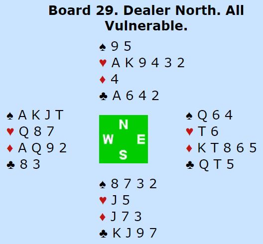 For to av parene som kom seg i 6 ruter var vest spillefører. Da blir det bet med hjerter ut. Men begge unngikk det og hadde sjansen, men gikk bet. Jeg vet dog ikke hvordan meldingene hadde gått ved de to bordene.