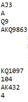 Litt matematikk hvis en ser litt bort fra meldingene, dog med forbehold om at matte-kunnskapene mine kanskje ikke er helt i vater... (men jeg er i alle fall ganske sikker på at A-Q i spar i sluttpossen gir størst sjanse):