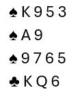 I dette spillet ville Splinter 4 ruter fungert perfekt. Nå hadde riktignok nord en singelton selv, og over syds 2NT kunne han vist den med et hopp. Men det er av og til litt ugunstig å vise singelton med esset singel (4HP). Uansett, slemmen ville vært like bra om nord hadde hatt de samme kortene, men 4-2-4-3 fordeling. Det ble alså stopp i 4 spar med tolv stikk for det paret.