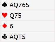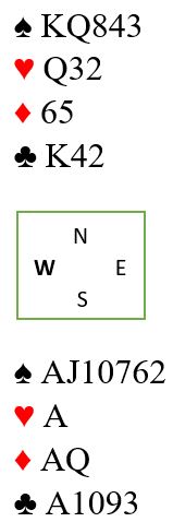 Men hvis kløver spilles først, hvordan bør kløveren i så fall best spilles for å få ett tredje stikk i fargen? Samme hvordan fargen angripes kan det sitte 4-2 motsatt vei av det du satser på (Q-J-x-x) og det vil ende opp med en ruterfinesse som selvsagt kan ryke.