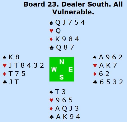 Dette spillet illustrerer godt hvor viktig det er å treffe på slikt i parturnering. To norske par satt i mot 6NT med tolv stikk, +1440, og tre andre noterte den scoren som Ø/V. Siden to par ikke meldte slem ga +1440 for tolv stikk 54% score. Ranja og Kåre fikk imidlertid alle poengene og 100% score for sin +1470!
