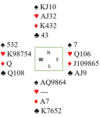 Etter dette hadde spillefører to sparstikk, tre hjerterstikk og fire ruterstikk, ni stikk totalt og +400.